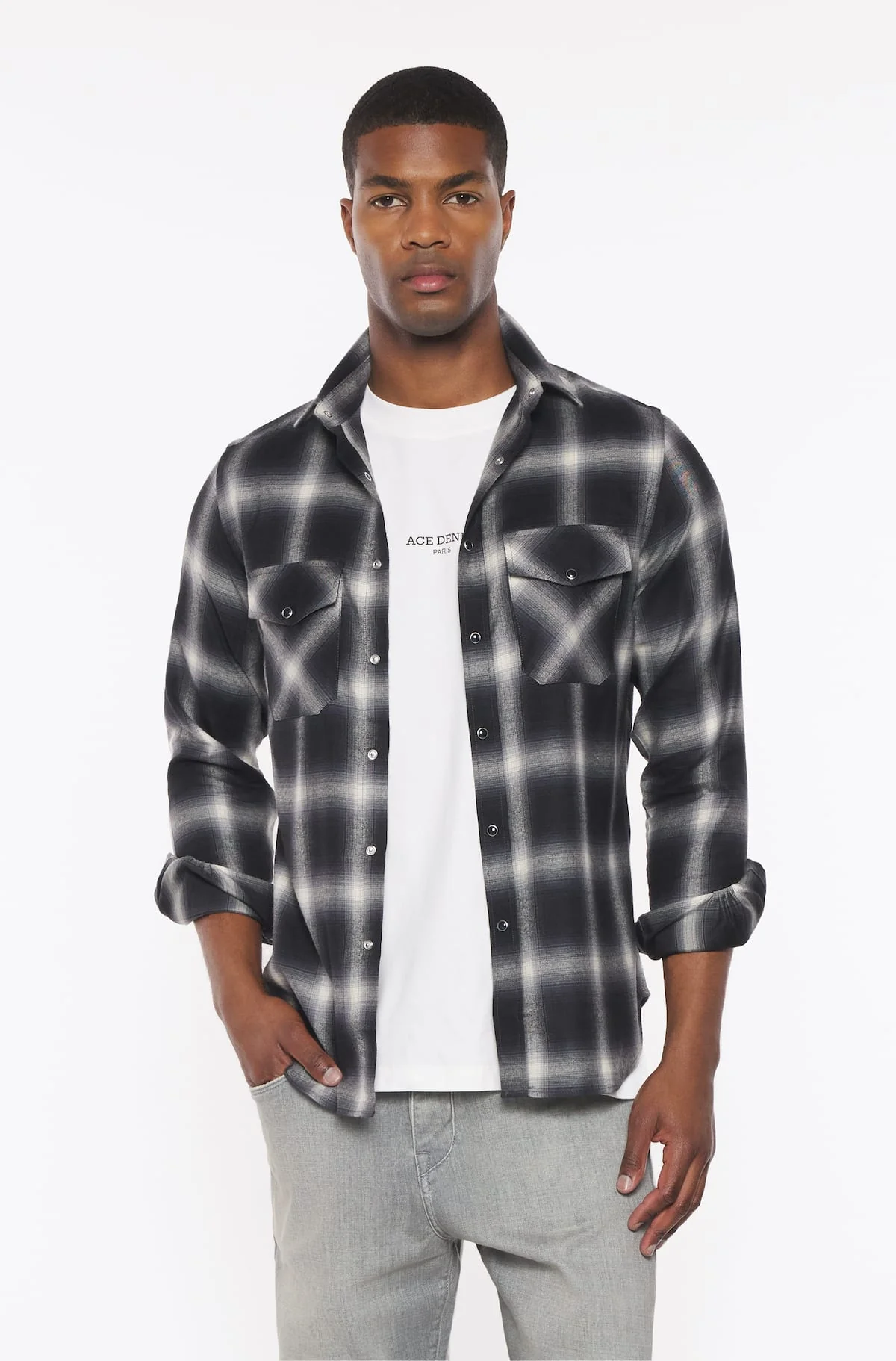 Les poches plaquées à rabats sur la poitrine ajoutent une touche pratique et sophistiquée, tandis que les boutons à pressions sur l’ensemble de la chemise assurent un look moderne et facile à porter.