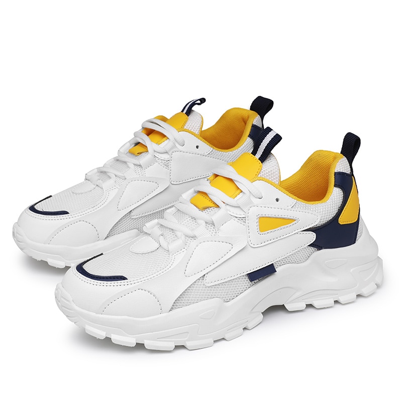 Baskets Abhoth en maille respirante pour homme Tailles : 39 au 44 Couleurs : Blanc & Jaune ou Blanc & Bleu