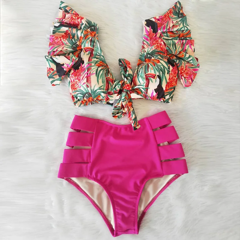 Sexy Bikinis deux pièces maillot de bain rose