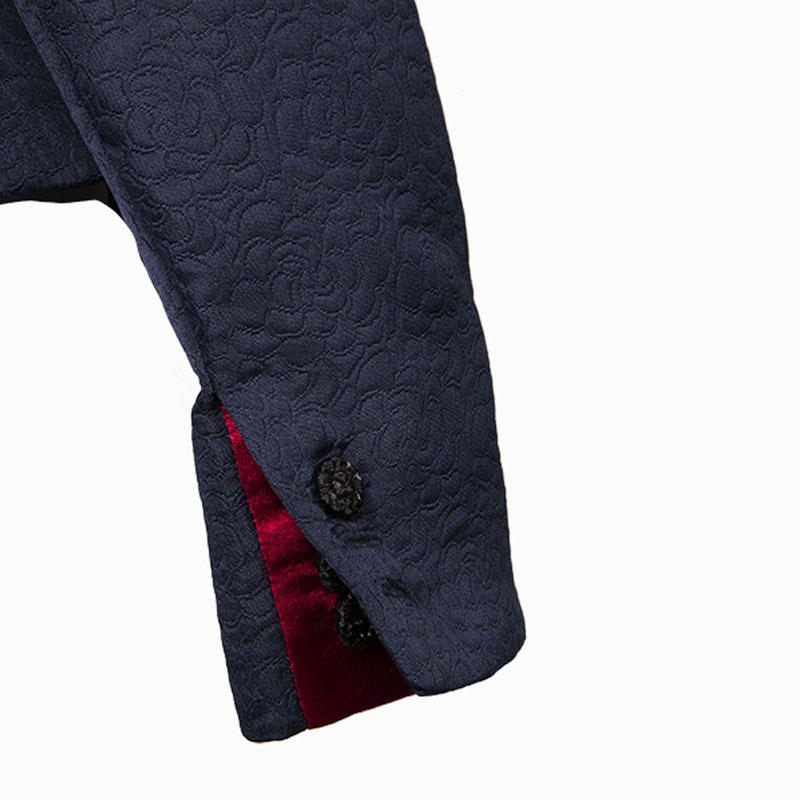 En tissu bleu marine gaufré, elle s’associe idéalement avec sa jupe crayon pour une silhouette féminine et élancée.
